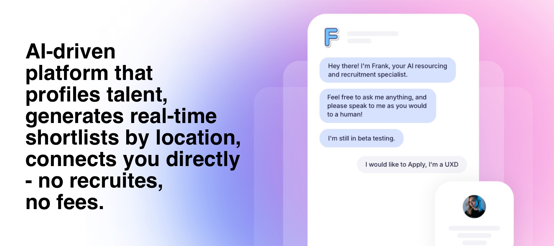 HeyFrank.io set out to change this — by creating an AI-driven hiring platform that automates candidate sourcing, scheduling, and prequalification. The platform removes recruiters from the equation, empowering hiring managers to connect directly with top candidates in a faster, more transparent way.